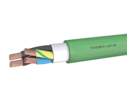 FG16OM16–0,6/1 kV No Smoke Multicore flexible power cable for fixed installation, G16 rubber insulated, LS0H thermoplastic sheathed. Resistant to fire propagation with a low emission of smoke and toxic and corrosive gases when exposed to fire.
