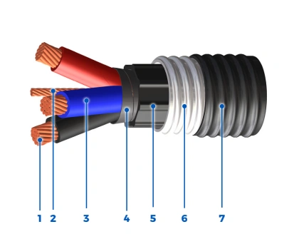 Vertical Mineshaft TECK 90 cables are designed for vertical applications to prevent cable core slippage and are suitable for use in mineshaft and for environments that require self-supporting