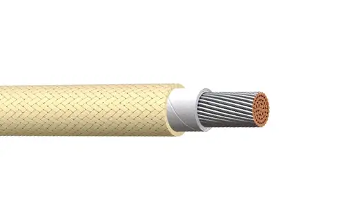 JACKET: Braided fiberglass with a high temperature finish impregnated with a moisture, heat and flame resistant compound